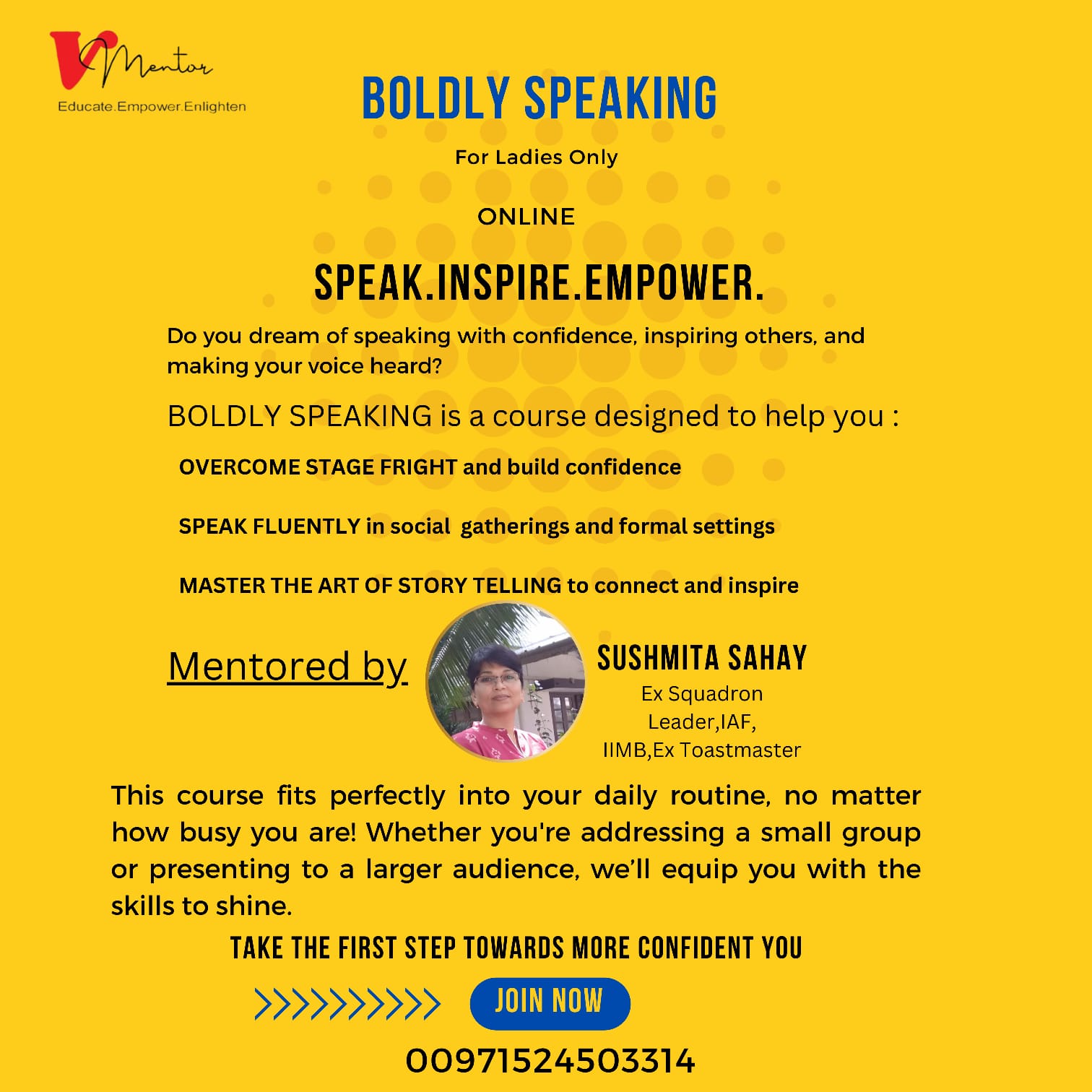 Join our 10-week Public Speaking online Workshop exclusively for ladies! Enhance your communication skills and boost your confidence in a supportive and empowering environment. Starting on January 30th, sessions will be held every Thursday from 11 AM to 12 PM.